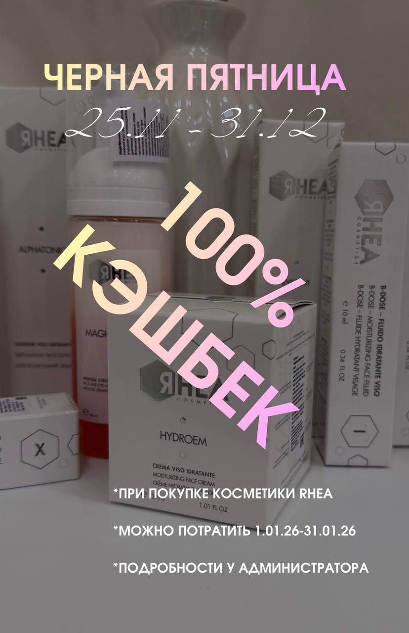 Покупайте любое средство профессиональной косметики «Рэя» ( Италия) и получайте 100% кэшбек от суммы покупки, чтобы потратить его уже в январе следующего года на любые процедуры.